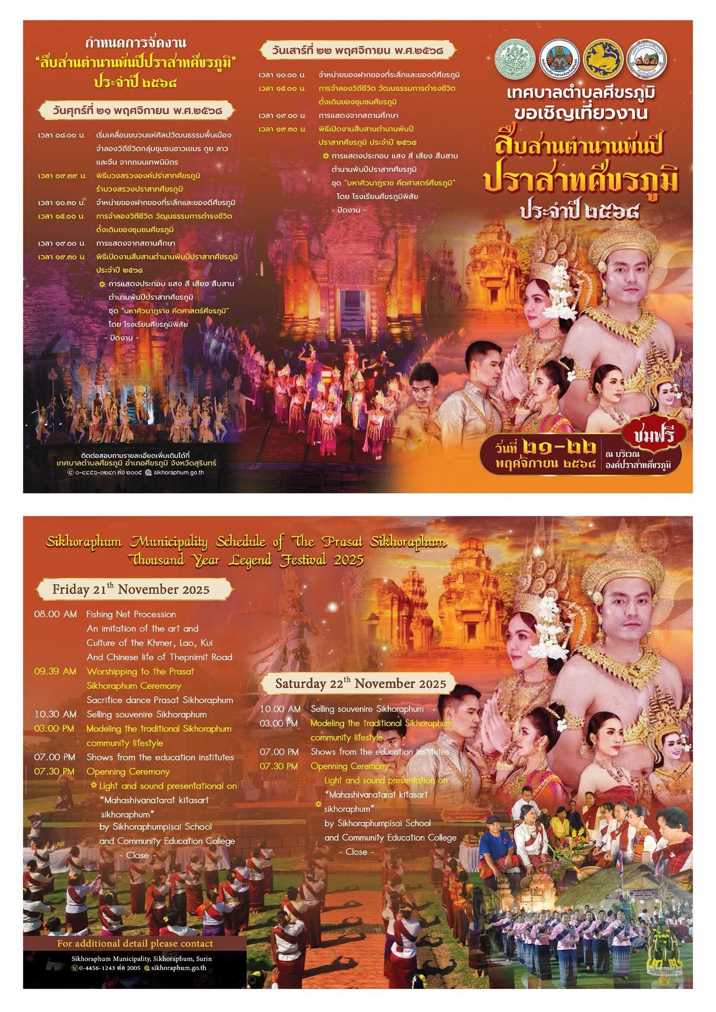 ขอเชิญเที่ยวงานสืบสานตำนานพันปีปราสาทศีขรภูมิ ประจำปี 2568